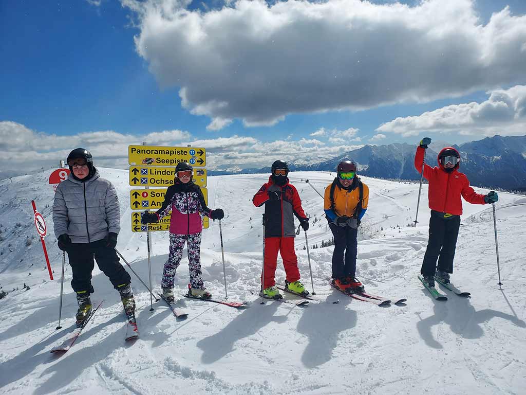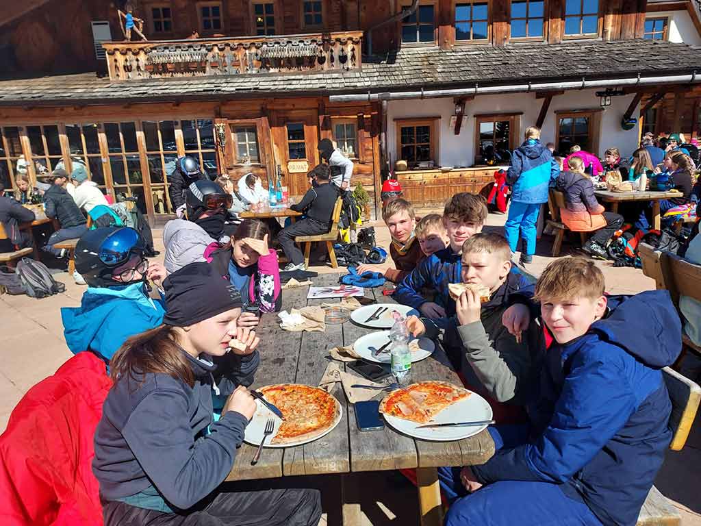 Wir haben den Tag heute um 7:30 Uhr begonnen mit einem sehr leckeren Frühstück. 8:30 Uhr sind wir dann zum Skiverleih gelaufen, haben alle Sachen genommen und sind dann zum Lift gelaufen Wir sind oben angekommen und es war eine super Aussicht (Gitschberg). Halb zwölf ging es zum Mittagessen, jeder hat was gefunden und es war sehr lecker 😋. Nach dem leckeren Mittagessen sind wir auf die andere Seite gefahren (Jochtal). Wir haben noch ein bisschen geübt und nach dem Üben haben wir unsere Choreographie geprobt. 15:30 Uhr war Ende. (Text: Lenny)