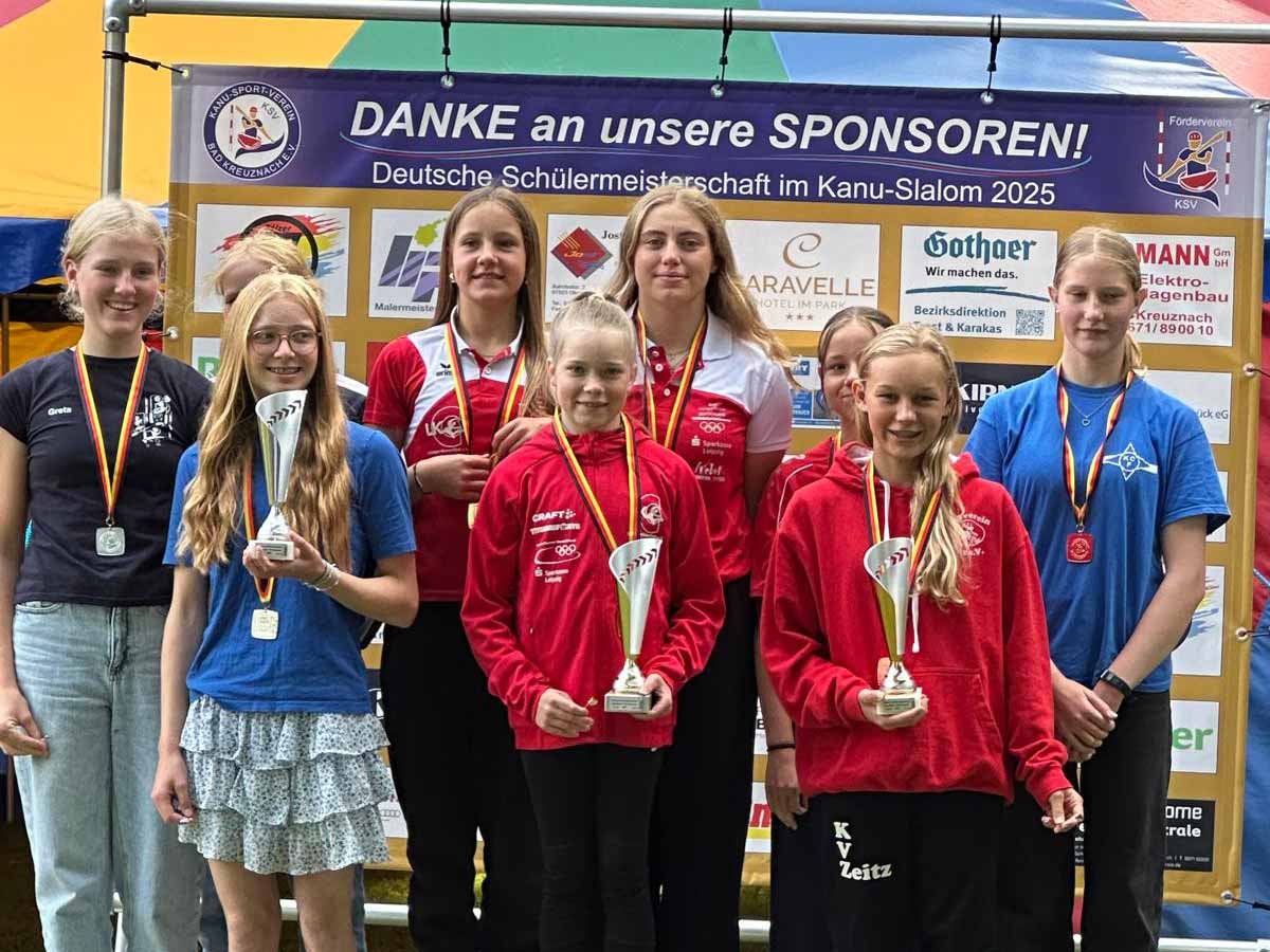 Emma Henze (SG, 6. Klasse) avanciert zur erfolgreichsten Teilnehmerin der Meisterschaften. Sie gewinnt in der AK U12 den Titel im Kajak-Einer und Canadier-Einer sowie zwei weitere Mannschaftsmedaillen. Einen weiteren Titel gab es für Rolf Neumann (SG, 8. Klasse) im Canadier-Einer der AK U14. Zudem fischte der LKC zwei weitere Einzelmedaillen aus dem Salinenwehr durch Anni Müller (Bronze, SG, 9. Klasse) und Rolf Neumann (Silber, SG, 8. Klasse).
