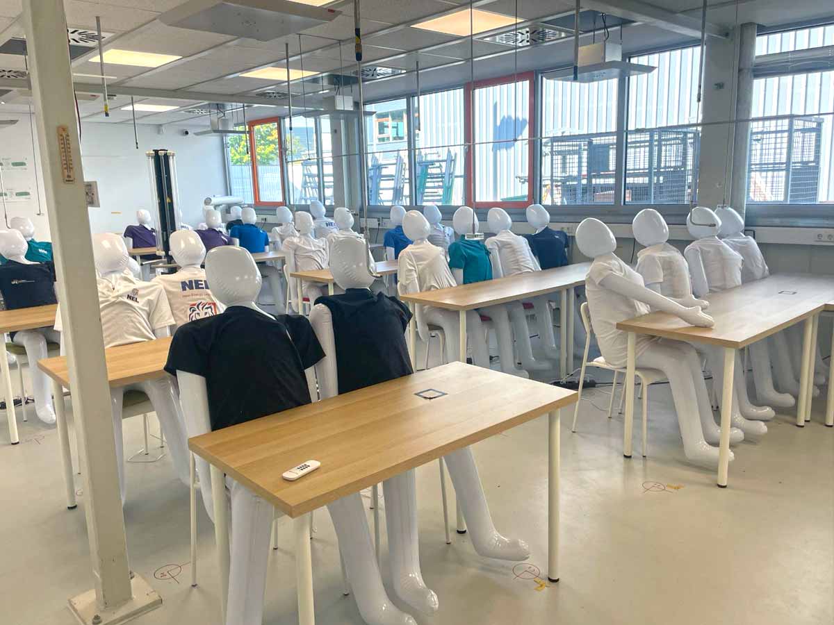Besonders interessant und nicht alltäglich war der Einblick in ein Klassenzimmer der anderen Art. Hier wird mittels Licht simuliert, wie sich Viren im Raum unter bestimmten Bedingungen bewegen. NEL arbeitet also auch eng mit der Forschung und Entwicklung zusammen.