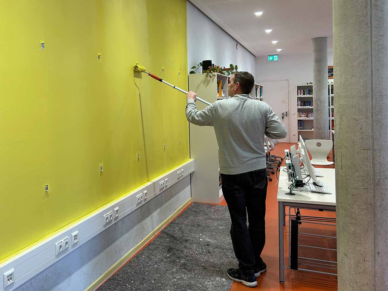 Im Zuge der Arbeiten haben wir außerdem die Gelegenheit genutzt, unsere Schulbibliothek neu zu streichen und auch hier für eine angenehmere Atmosphäre zu sorgen. Ein herzliches Dankeschön geht somit auch an unsere Mitarbeiter Ronny und Falk für ihren tatkräftigen Einsatz und ihre Unterstützung bei der Umsetzung dieses Projekts.