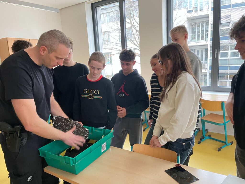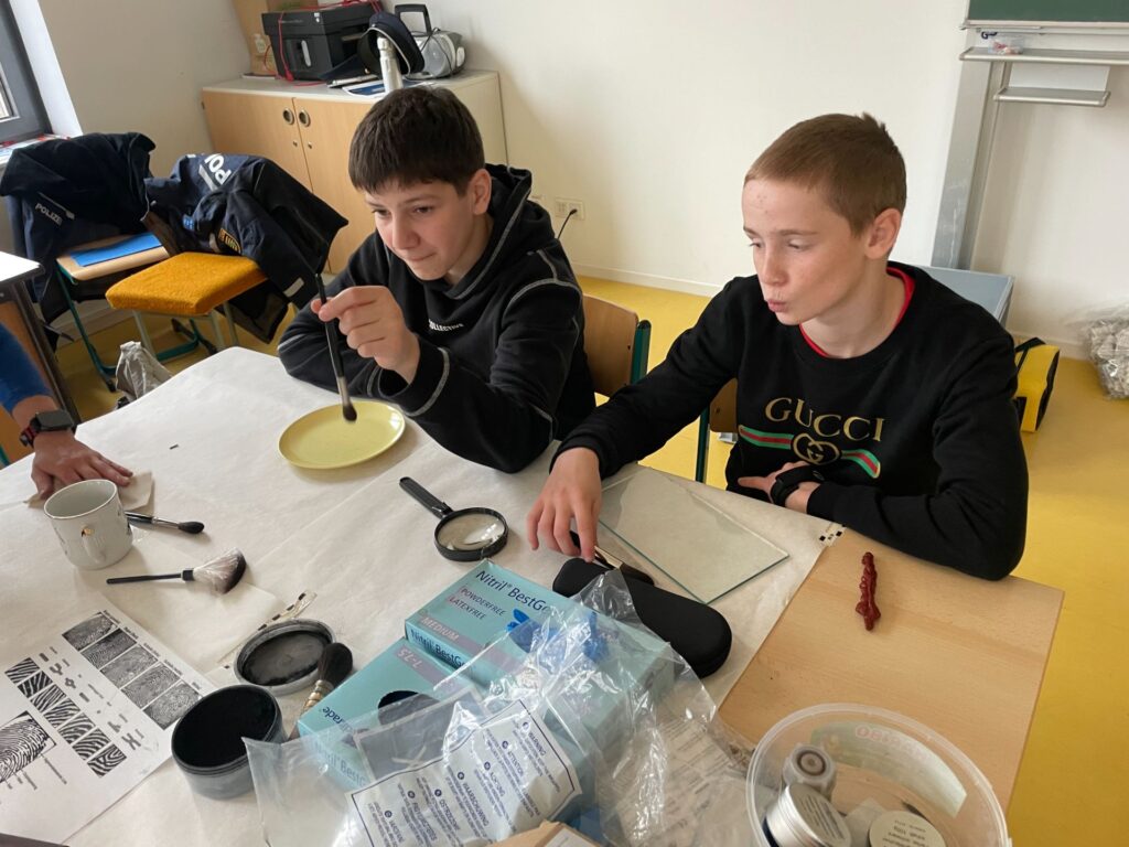 Im Projekt „Tatort“ ermittelte eine Gruppe mit Unterstützung der Landespolizei Sachsen einen Kriminalfall und erhielt viele spannende Einblicke in die vielseitige Arbeit einer Polizistin bzw. eines Polizisten.
