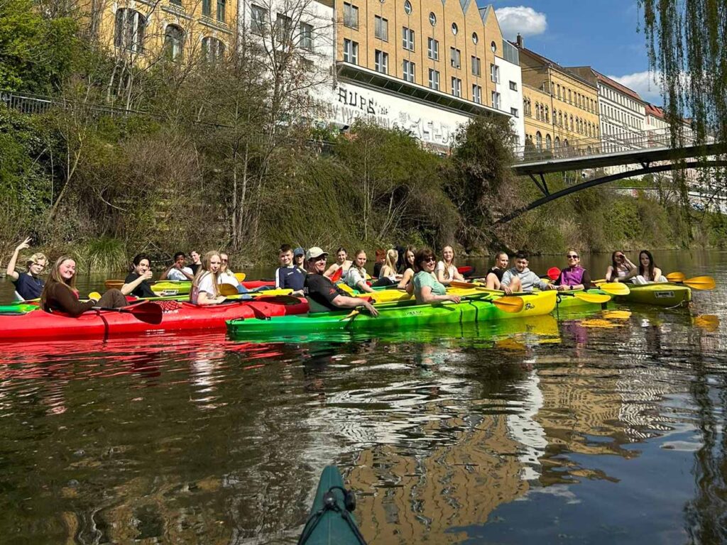 Am letzten Tag wurde es noch einmal aktiv: Fechten, ein Besuch im RB Leipzig Fußball-Stadion sowie gemeinsames Kajakfahren boten vielfältige Erlebnisse. Den gelungenen Abschluss bildete ein gemeinsames Treffen mit den Eltern im Biergarten – ein schöner Moment, um die Woche Revue passieren zu lassen.