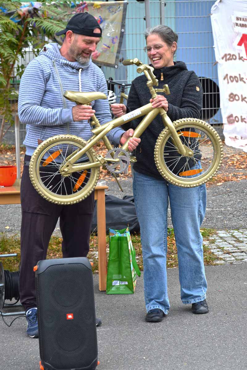 Neben der Auswertung des Gesamtergebnisses wird es die Preisverleihung in verschiedenen Kategorien aller 3 Schulen im Mittelpunkt der Veranstaltung stehen. Höhepunkt der Siegerehrung wird die Übergabe des Goldenen BMX als Wanderpokal für die beste unserer 3 Schulen (Schule 5, Sportgymnasium, SportOberschule) sein. Ein großes Dankeschön für die Bereitstellung und Finanzierung der Preise geht jetzt schon an unseren Schulförderverein und das Radsportgeschäft Gruppetto.