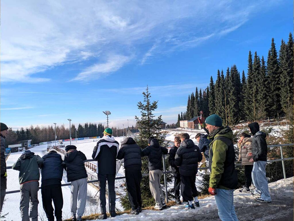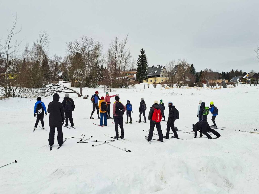 Wie jedes Jahr ging es auch diesmal für die gesamte Klassenstufe 7 vom 11. – 16.01.2026 gemeinsam mit acht Sportlehrerinnen und Sportlehrern sowie den vier Klassenleitern auf große Fahrt ins Winterlager nach Altenberg. Pünktlich um 08:30 Uhr starteten wir mit zwei Reisebussen an der Schule und erreichten Altenberg trotz winterlicher Wetterverhältnisse problemlos und wie geplant.