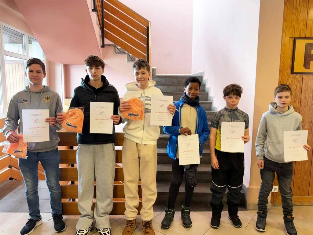 Die Tage folgten einem festen Ablauf: Um 7:45 Uhr hieß es aufstehen, ab 8:00 Uhr wartete das leckere und reichhaltige Frühstücksbuffet. Spätestens um 10:00 Uhr standen alle auf den Skiern zur ersten Trainingseinheit. Beim Mittagessen um 12:30 Uhr und einer anschließenden kurzen Pause wurden neue Kräfte gesammelt, bevor gegen 14:00 Uhr die zweite Trainingseinheit begann. Von 16:30 Uhr bis zum Abendessen um 18:00 Uhr hatten die Schülerinnen und Schüler Freizeit. Ab 19:30 Uhr war jeden Abend für jede Klasse eine gemeinsame Aktivität geplant: Schwimmen und Spaß im hoteleigenen Pool, Biathlon-Schießtraining, Tischtennisturnier oder Kegeln. Aus allen Ecken des Hauses waren dabei Lachen und Jubel unserer vier Klassen zu hören. Gegen 21:30 Uhr wurde dann langsam die Nachtruhe eingeläutet – denn nur ausgeruht kommt man auf der Loipe gut voran!