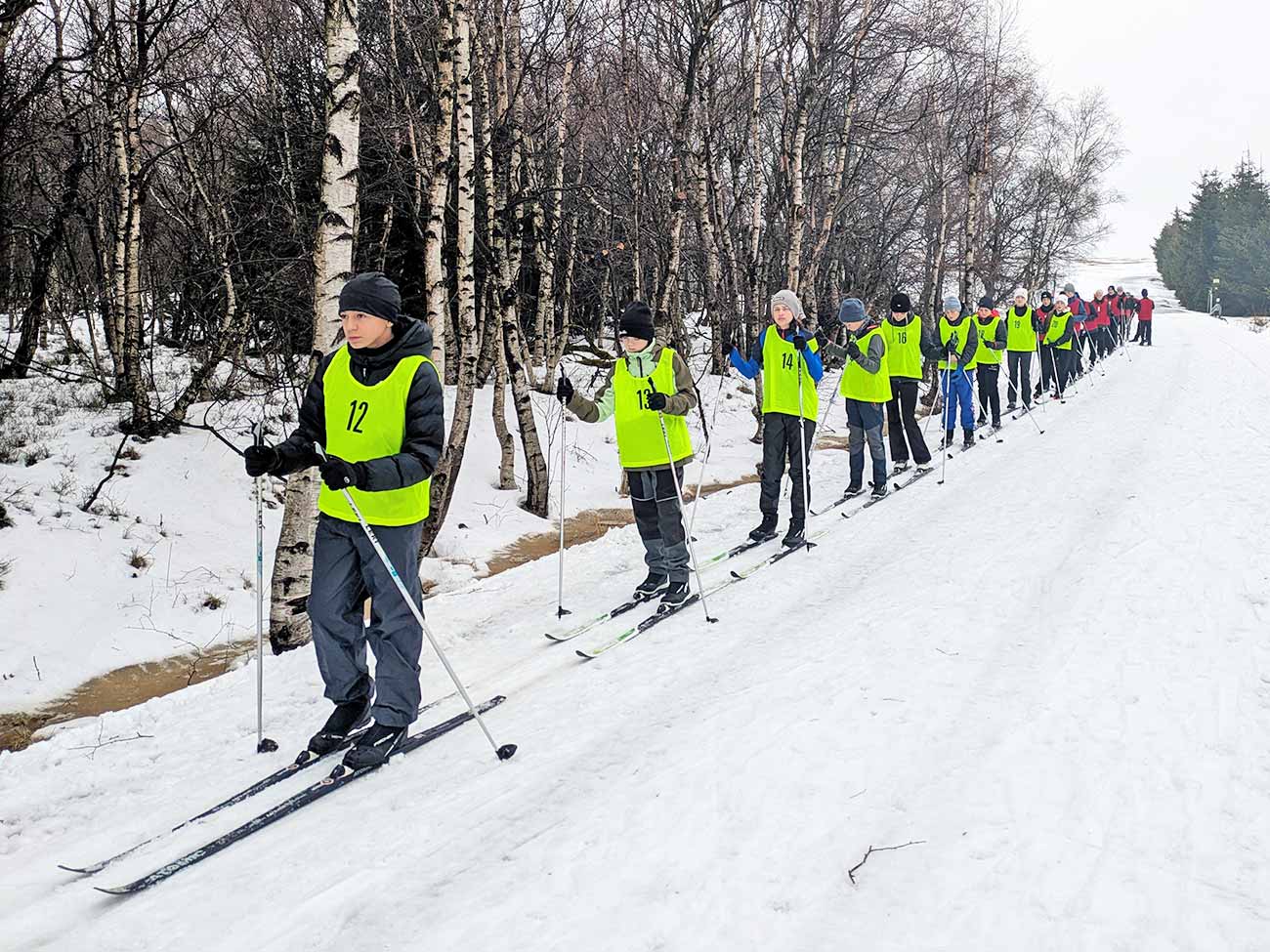 Leider blieben uns die guten Wetterverhältnisse nicht über die gesamte Woche hinweg treu, sodass wir zwischendurch auch mit Regen und Tauwetter zurechtkommen mussten. Kurzerhand wurde der ursprünglich für Freitag geplante Langlauf-Wettkampf auf den Donnerstag vorverlegt. Die Schülerinnen und Schüler starteten im 30-Sekunden-Takt auf eine fünf Kilometer lange Strecke und gaben ihr Bestes, um möglichst schnell das Ziel zu erreichen.
